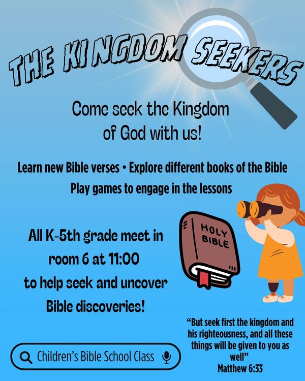 In Summer 2025 at 11 am, kids will learn a new memory verse each week. Come to class to learn 10 essential Bible verses that will help you in all your life. There will be songs, activities and games.