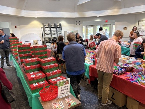 Join us in our mission to provide Christmas gifts for children around the globe through Samaritan's Purse's Operation Christmas Child program. We collect items such as school supplies, toys, clothes, and hygiene items (no foods or liquids, please!) all year round for our big packing party every November. We pack hundreds of boxes that get sent to kids who are in need of hope. Pack a box and change a life!